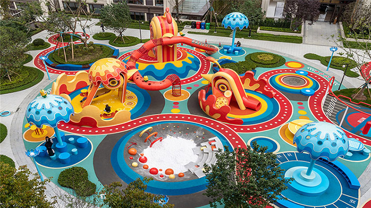全场地采用环保防滑材质,兼顾视觉吸引力与游玩安全性,既是孩子们释放天性的童趣天地,也是邻里间陪伴互动、轻松社交的温馨场景,为社区注入持续的活力与温度。